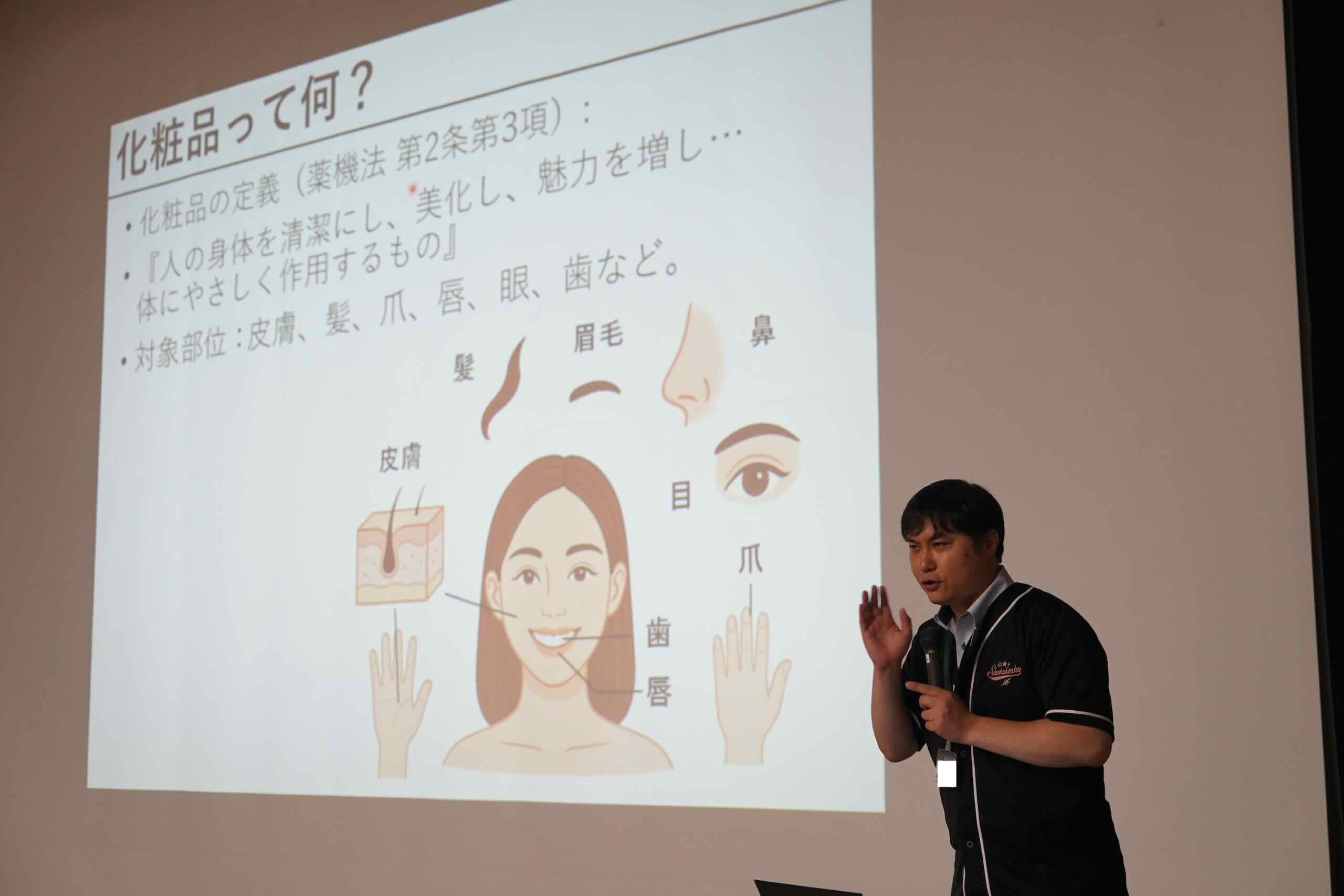 タイトルは「知床に学ぶ美と化粧品〜自然と科学と未来〜」。日焼け止めなどスキンケア化粧品の成分やその効能、さらに知床エリアにある天然の化粧品素材について学んだ。香料の素材となるハマナスの花、抗酸化作用が期待されるハマナスの実、保湿効果のあるシラカンバ(白樺)の樹液などが紹介され、実際に食香粧化学科の学生が商品開発を行った事例なども知ることができた。
